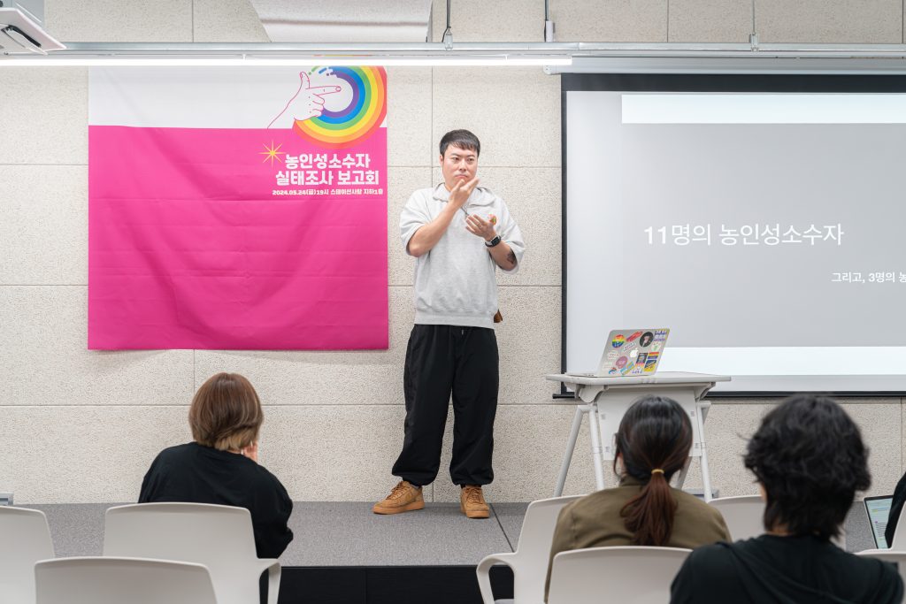 2019년 12월 단체의 시작부터 지금까지, 모든 순간에 함께했던 그의 시간은 한국농인LGBT+의 시간과 분리할 수 없습니다. 그는 단체의 얼굴이었고, 때로는 우리 그 자체였습니다.
